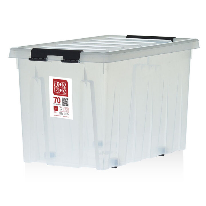 Купить Rox Box 70 Ящик 589х396х355 мм с крышкой и клипсами, на роликах, прозрачный (82,8 литра)