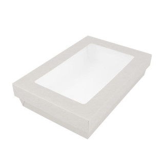 Купить Ланч-бокс с крышкой с окном бумажный 1300 мл, белый 21*14*5 см, (1упаковка= 50 шт), GP