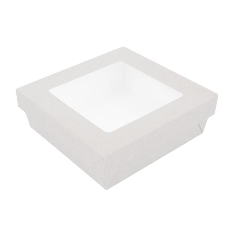 Купить Ланч-бокс с крышкой с окном бумажный 750 мл, белый 14*14*5 см, (1упаковка= 25 шт) GP